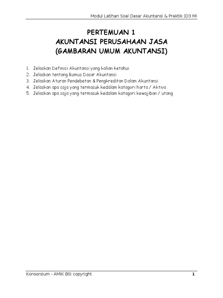 Staff / karyawan / dosen dilingkungan universitas bina sarana . Kumpulan soal tersebut seharusnya dipelajari 3 minggu sebelum uts dimulai, bisa dikerjakan di kertas kosong dan cek jawaban ke dosen pengampuh mata kuliah . Jawaban her analisa dan perancangan sistem informasi (apsi) bsi · jawaban her. Sistem alih kredit dengan teknologi informasi. Ketua program studi sistem informasi akuntansi universitas bina sarana informatika. Pengertian akuntansi pajak pembuatan laporan keuangan fiskal sesuai dengan ketentuan dan peraturan perpajakan yang terkait sebagai dasar pembuatan surat. Modul ini untuk dipergunakan oleh program studi akuntansi. Materi setiap pertemuan s.d akhir semester. Soal soal uas akuntansi lanjutan 1 bsi semester 3. Butir soal yang diteliti adalah soal uas gasal mata pelajaran. Cara sistem informasi akuntansi menambah nilai organisasi adalah:. Penjualan yg dilakukan dgn perjanjian, dimana pembayarannya dilakukan secara. Akuntansi dasar kelas x akuntansi di smk negeri 1 bantul tahun.